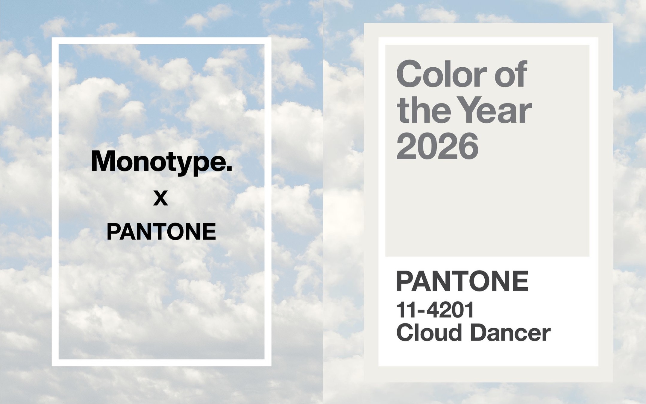 2026 年 12 月 4 日,蒙纳字库为年度Pantone色彩 PANTONE 11-4201 Cloud Dancer 赋予了其首个字体表达。这一表达由蒙纳资深执行创意字体总监 Charles Nix 选定,即 Jensen Arabique™ 字体。该字体由独立设计师 Jason Castle 于三十余年前创作,灵感源自 Gustav Jensen 的经典字母设计。