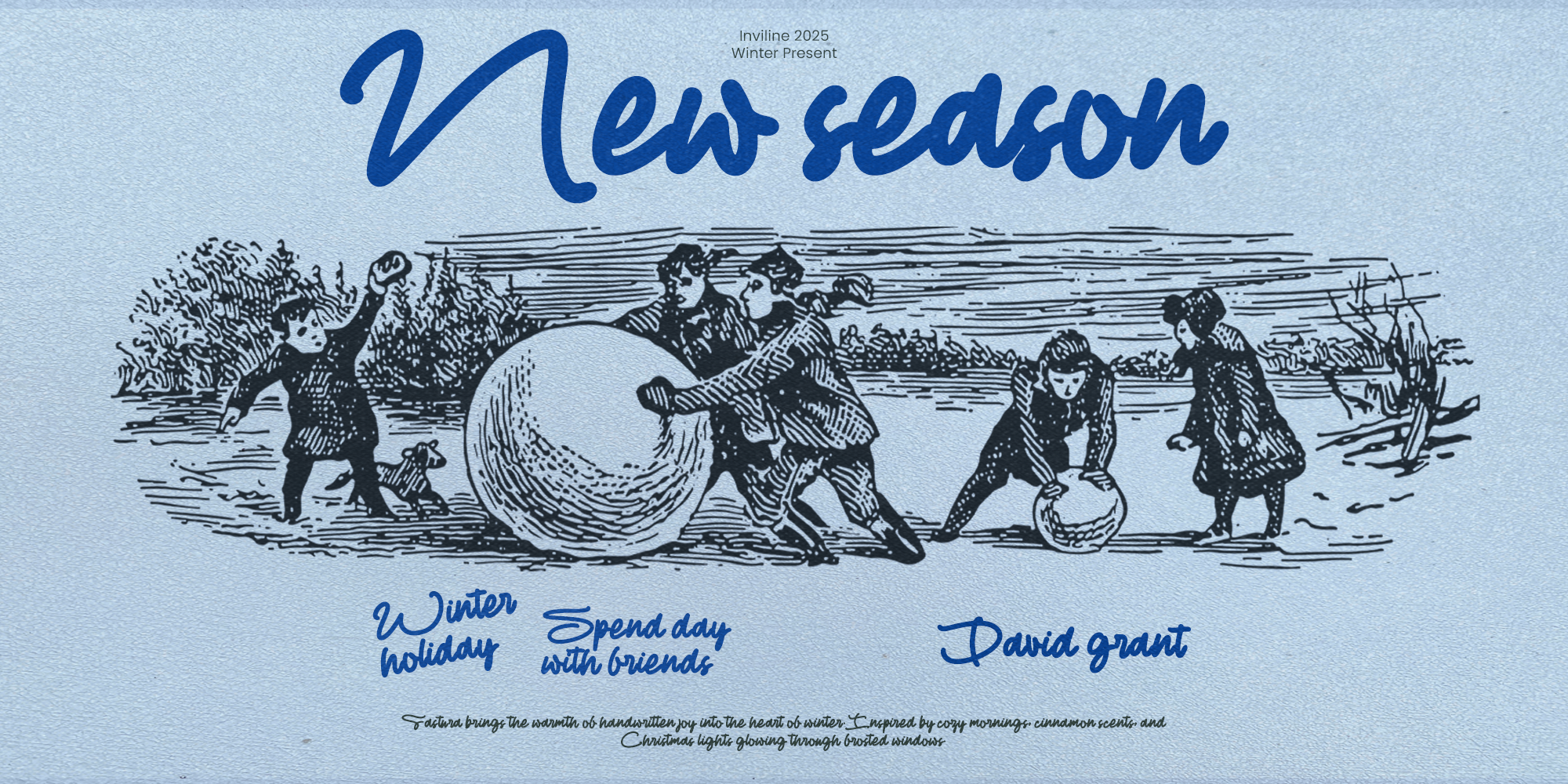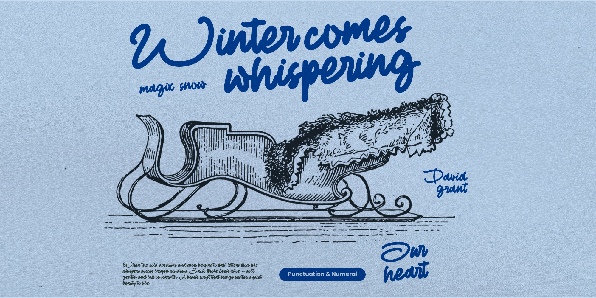 它拥有 Regular 与 Italic 两款样式,既能用正体展现轻盈的浪漫,也能通过斜体表达含蓄的精致。无论是品牌冬季主题活动、圣诞礼盒包装,还是节日贺卡的细腻问候,都能借这款字体找到恰如其分的表现方式。