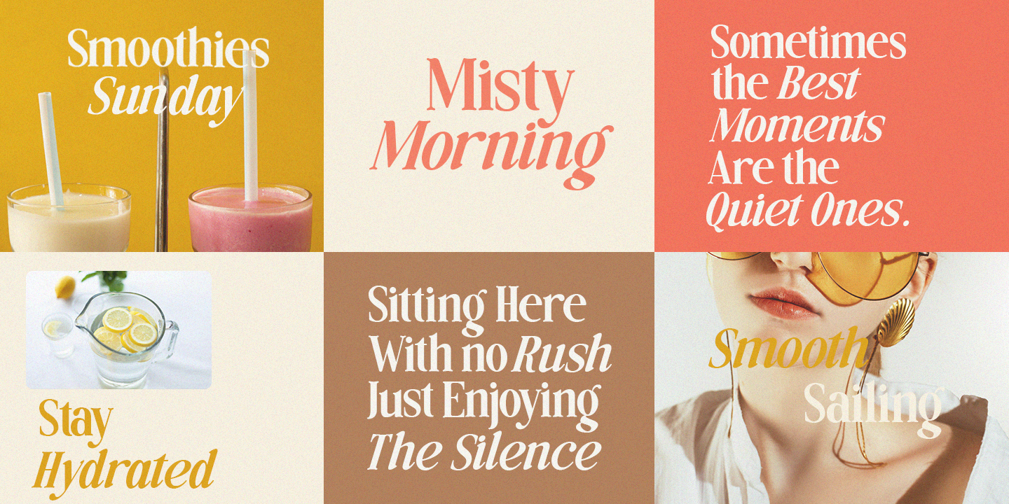 无论应用的设计场景如何,它都能轻松切换于古典与时尚之间,让版面呈现出轻盈高级的气质。在需要表达温暖、浪漫、静谧时,它会是那个恰到好处的选择。