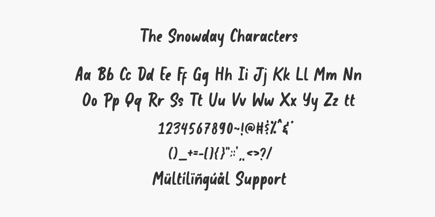 The Snowday 有着手写般的随性笔触,就像在雪地上用树枝涂鸦留下的轻松印记。它不追求规整,反而用一点点凌乱与童趣,把冬天的欢乐氛围烘托得刚刚好。